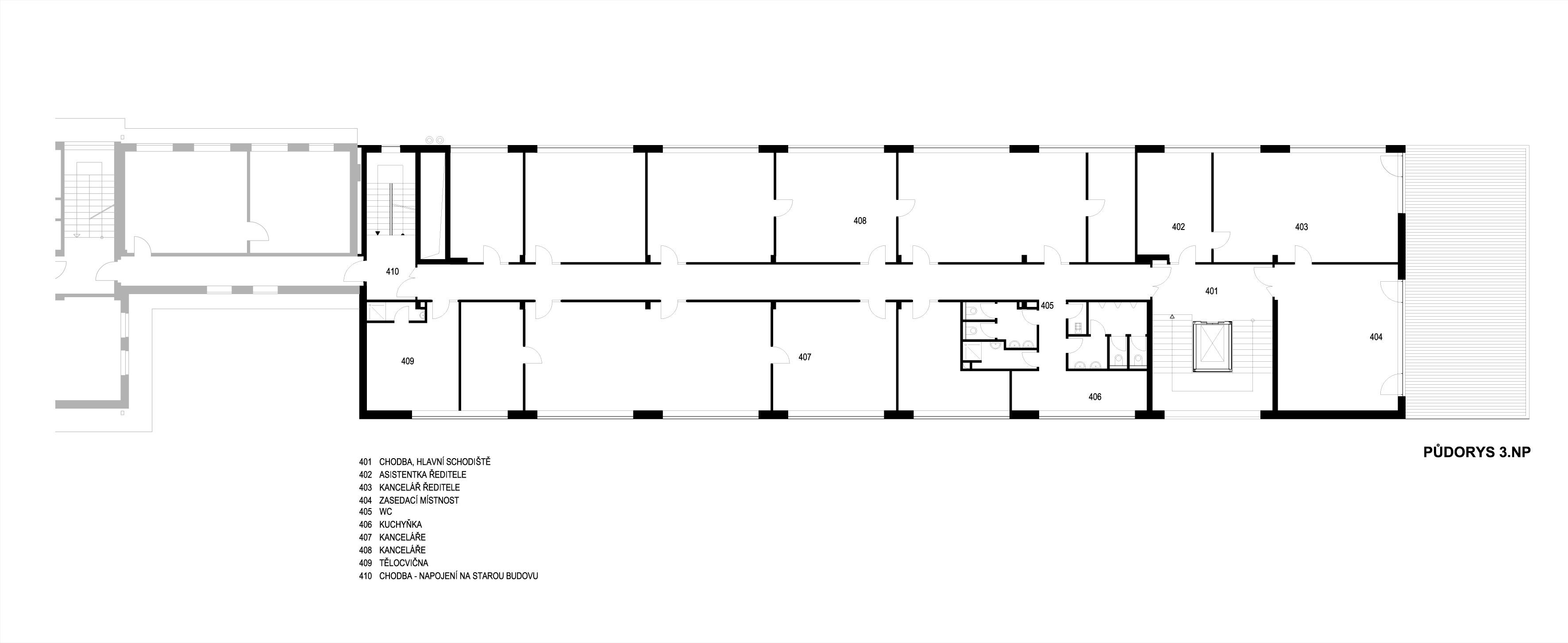 Provozní uspořádání objektu odpovídá jednotlivým podlažím: V 1.PP jsou umístěny místnosti s tzv. čistým a superčistým provozem, ve kterých probíhá finální kompletace mikroskopů, v 1.NP jsou skladové prostory, balírna a expedice a ve 2.-3.NP jsou kanceláře. Jednotlivé provozy jsou dle potřeby propojeny nákladními výtahy, osobní výtah umístěný v zrcadle hlavního schodiště propojuje všechna podlaží. Nový objekt je bezbariérově propojen se stávající budovou.